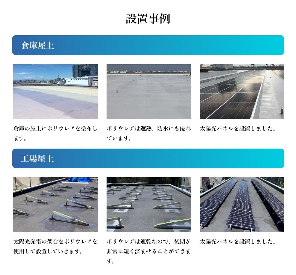 超高速硬化性樹脂化合物「ポリウレア」を用いた新施工技術による太陽光発電パネル設置工法の提供開始
